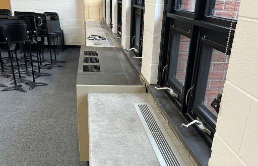 Laurentian Public School required a mechanical solution that could balance year-round comfort with energy efficiency. Daikin unit ventilators were selected as the basis of design, offering both standard cooling and heating through integrated hot water coils to support colder ambient conditions.