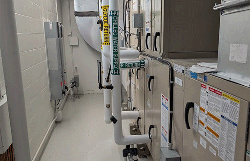 The project included a comprehensive acoustical package featuring seismic restraint design, commercial silencers, and both fabric-wrapped and metal acoustical panels—all chosen to enhance comfort and focus for students and staff.